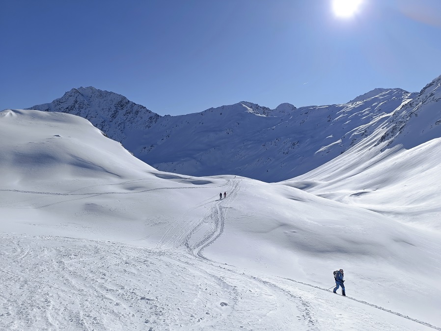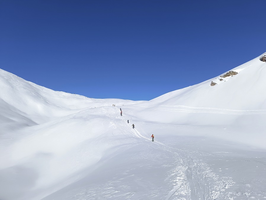 Saranno tre giorni sulle nevi dei giganti Valdostani. Nel primo giorno saremo in Valtournenche per una salita ad una cima di 2500 metri e vista sulla Grande Becca: il Cervino. Nel secondo giorno sarà la volta della Val Ferret e del Monte Bianco. Pernotteremo al bellissimo Rifugio Bonatti 2025 metri, il terzo giorno saliremo una forcella a 2500 metri di quota. La domenica torneremo in auto indicativamente tra le 15.00 e le 16.00.